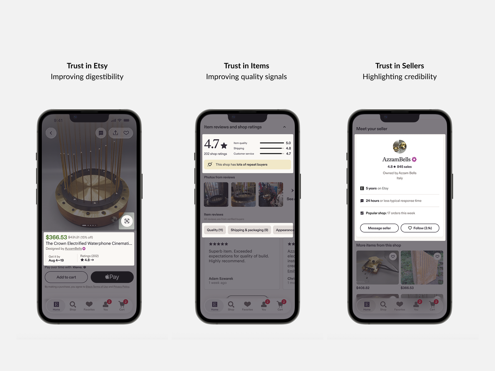 Buyers couldn't quickly assess whether an item was right for them, whether the seller was legitimate, or whether Etsy itself was a safe place to shop.